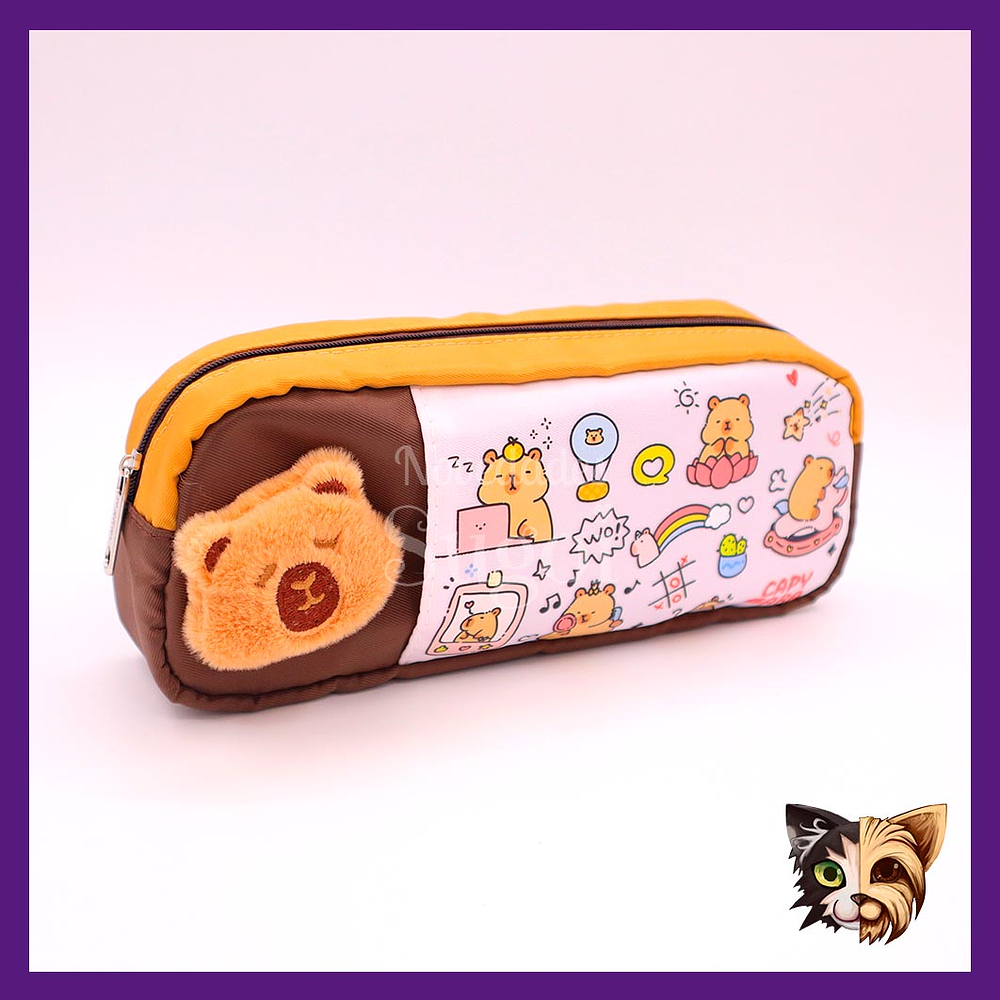 Estuche con cierre y diseño de Capibara con mini peluche y bolsillo exterior
